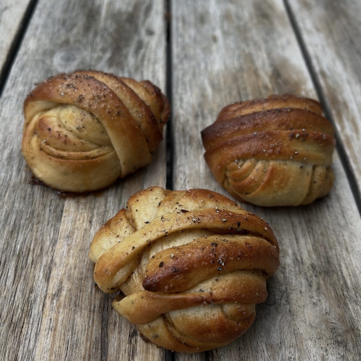 Das Formen der typischen “Snurrer” funktioniert anders als bei den Zimtknoten . Es wird ein langer Strang aufgewickelt. Die Technik muss man sich im unten verlinkten Video gut anschauen und vielleicht auch mal trocken mit einem Geschenkband ausprobieren bevor man sich an den Teig wagt.