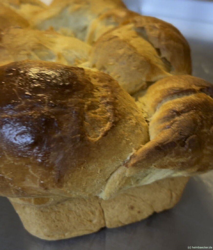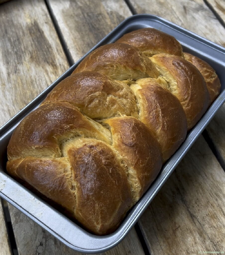 Ich habe mich beim Rezept für eine “ungesüßte” Variante entschieden, die auch lecker zu herzhaften Belag, wie z.B. Weichkäse oder Leberwurst schmeckt, die kleine Menge Zucker sorgt hierbei für eine schöne Bräunung und ein gutes Volumen. Wenn Du ein leicht süßes Brioche haben möchtest, erhöhe die Zuckermenge auf 50-60 g.