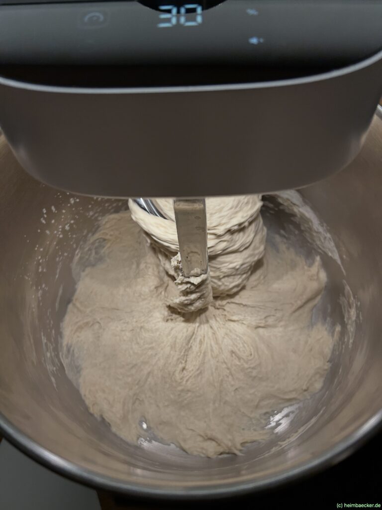 | fester Weizenteig (TA 150-160) | wird auch bei kleineren Mengen Teig gut geknetet |
