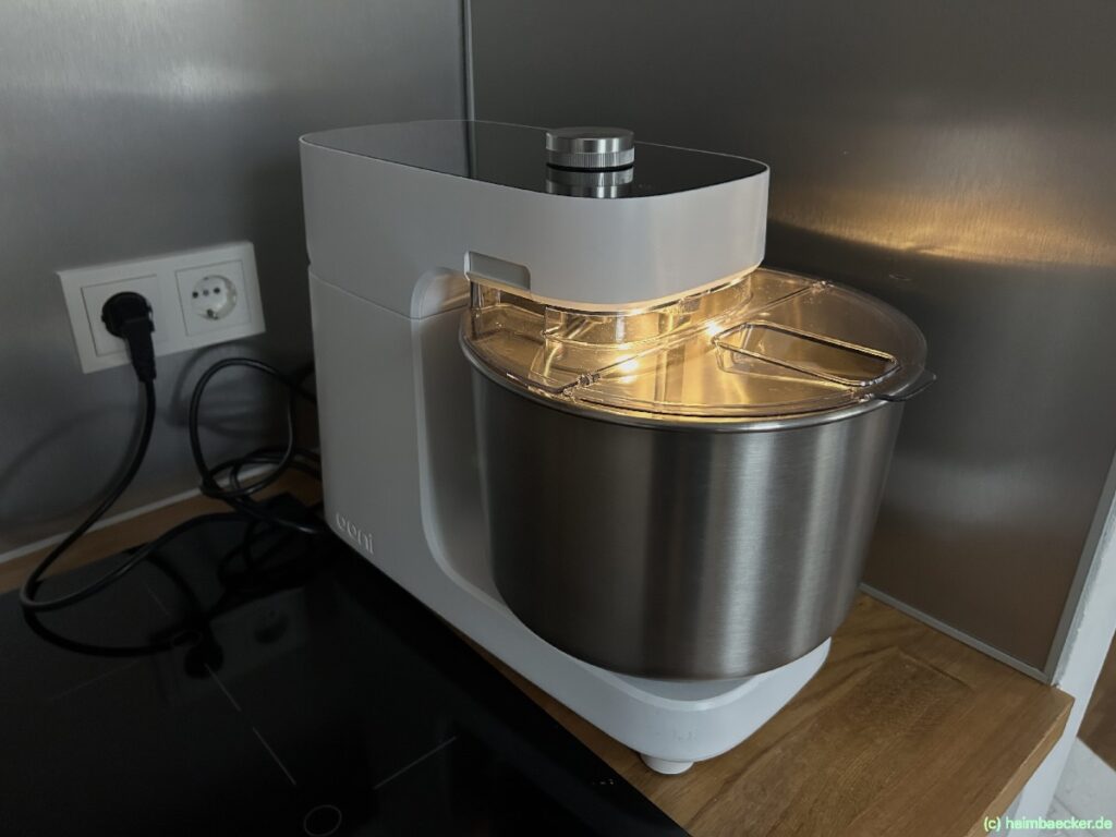 Lautstärke: Die Ooni Halo Pro liegt im Vergleich zu den mir bekannten Maschinen von der Lautstärke her im Mittelfeld, sie ist z.B. deutlich lauter als die Wilfa Probaker und die Ankarsrum. Zusätzlich schaltet sich bei längeren Knetzeiten auch noch ein Lüfter zu, der den Motor der Maschine auch nach dem Ende der Knetzeit noch weiter kühlt.