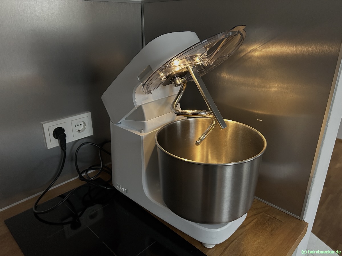 Schwächen zeigt die Halo Pro bei kleinen Teigmengen und bei Teigen mit höherem Roggenanteil, welche sie nicht so gut knetet. Auch ist durch den Teigbrecher der “Zugang” zum Teig, z.B. für einen Fenstertest nicht so einfach wie bei anderen Knetmaschinen. Zudem ist die Maschine mir auch etwas zu laut.